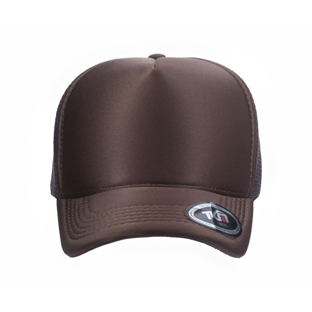 Boné modelo trucker liso, com frente e aba em tecido 100% Poliéster dublado com espuma de alta densidade.